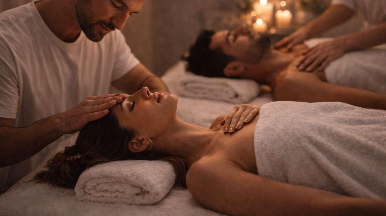 Women-led private couple wellness sessions designed for structured reconnection, calm intimacy, and shared stress recovery within clearly defined boundaries.